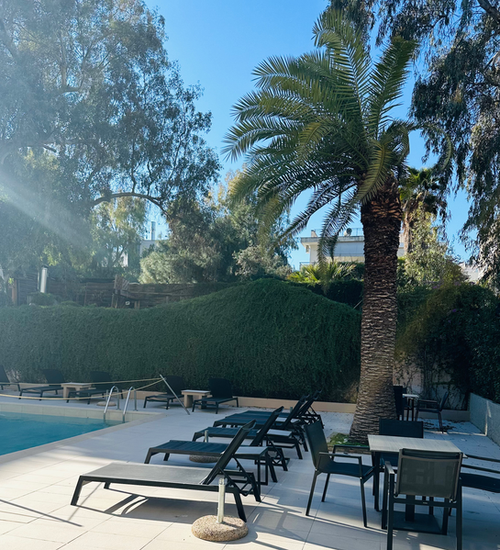 Located on a lively, tree-lined street, this modern hotel is just a 9-minute walk from Astera Beach on the Saronic Gulf, 8 km from the scenic Vouliagmeni Lake, and 24 km from Athens International Airport.